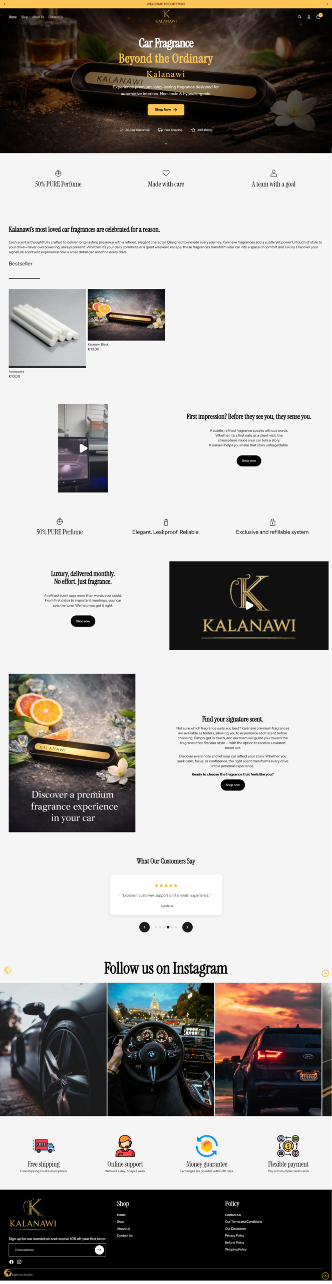 Kalanawi car perfume website designed on shopify